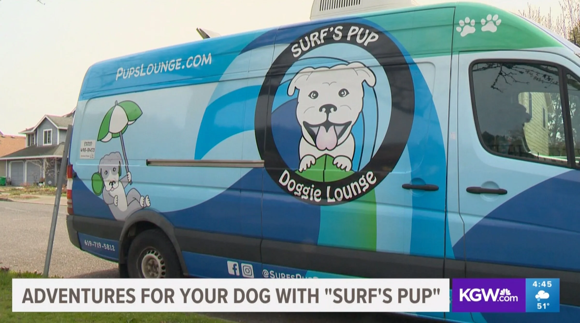 Watch Surf's Pup Doggie Lounge on KPTV Ch 12 News to learn more about our Dog Walking PUPventures!
