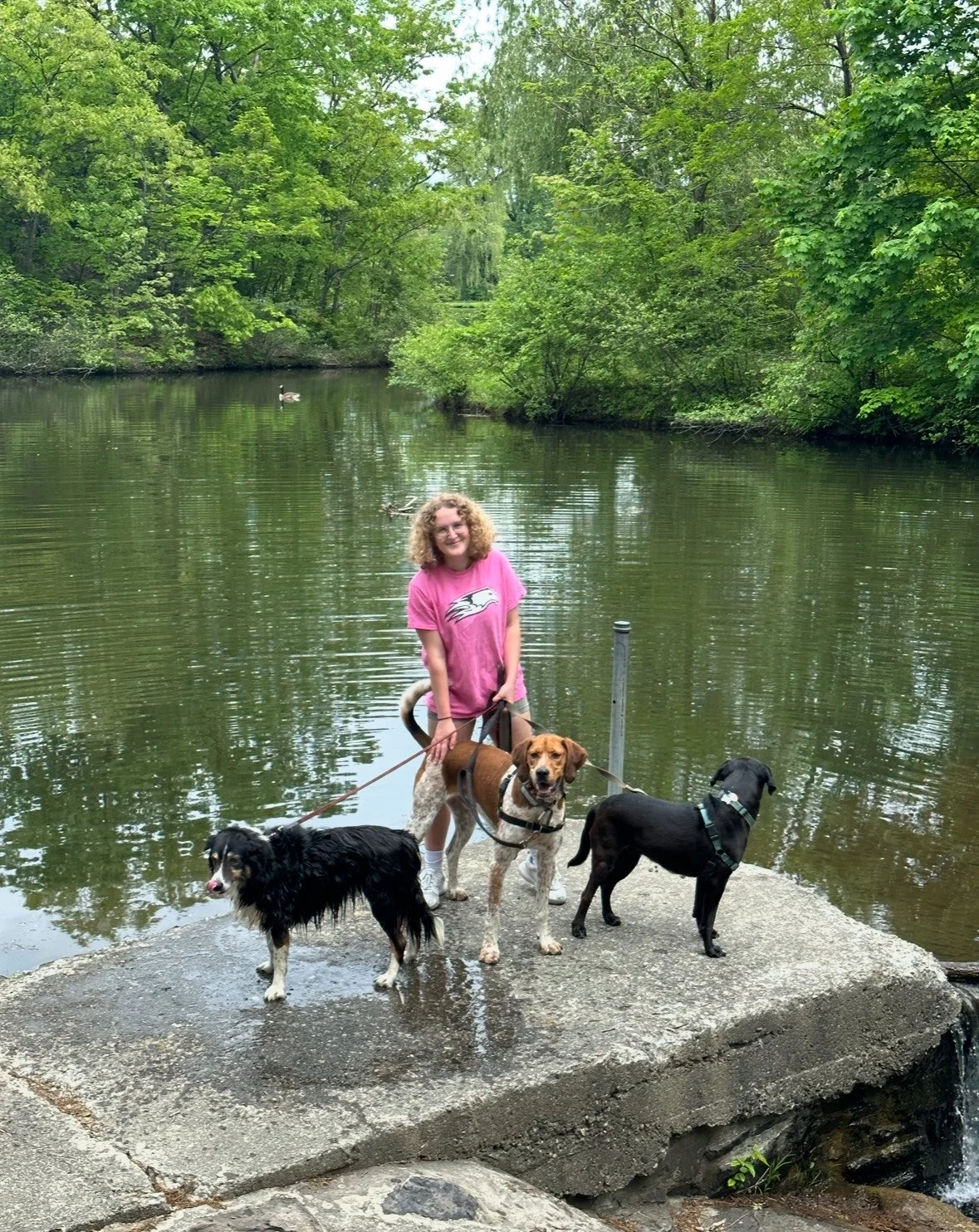 Izzi grew up in New York and found her way to Portland this summer of 2025 for new, fun and doggie filled adventures! She graduated from Bard College, with a degree in environmental science and has a background in renewable energy sources, and is also working in the solar energy industry
